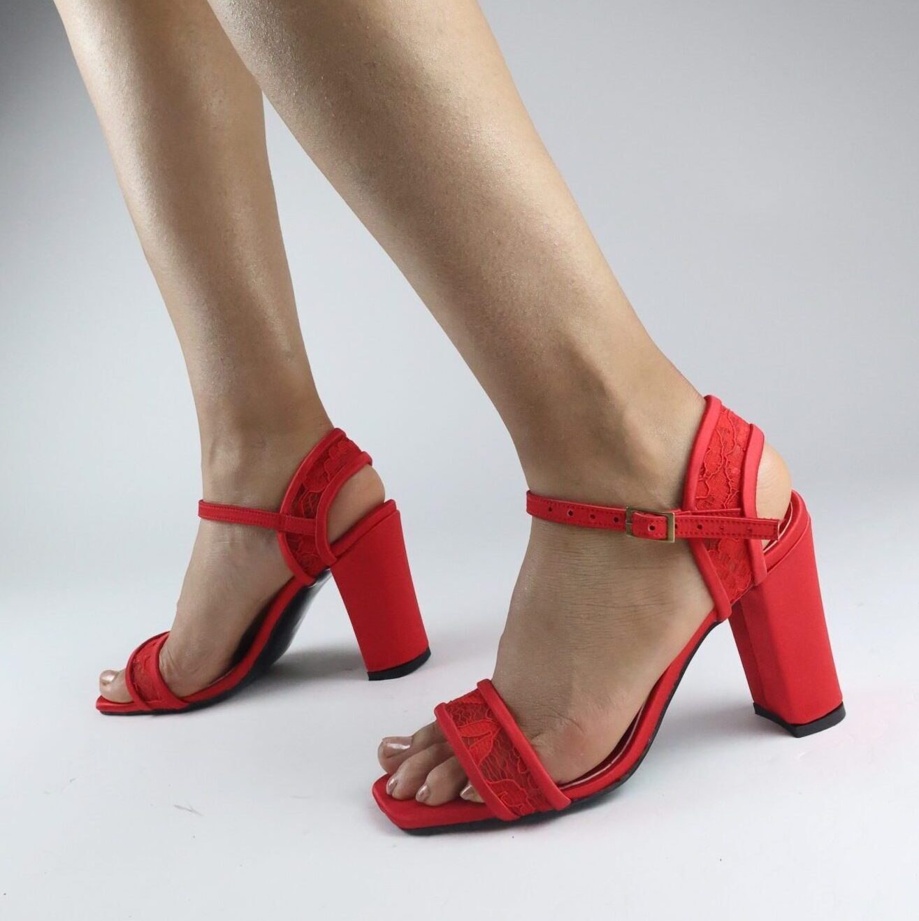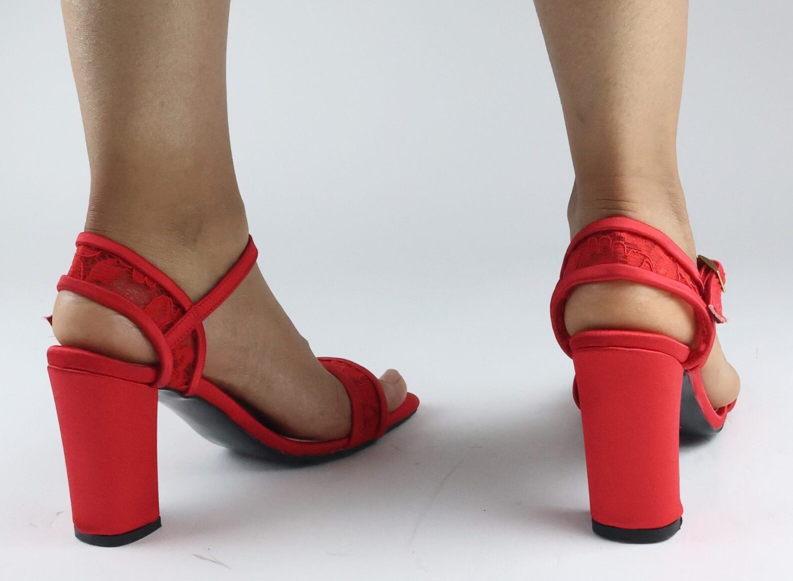 Kırmızı Dantel Güpür Şık Davet Sandalet Ayakkabı