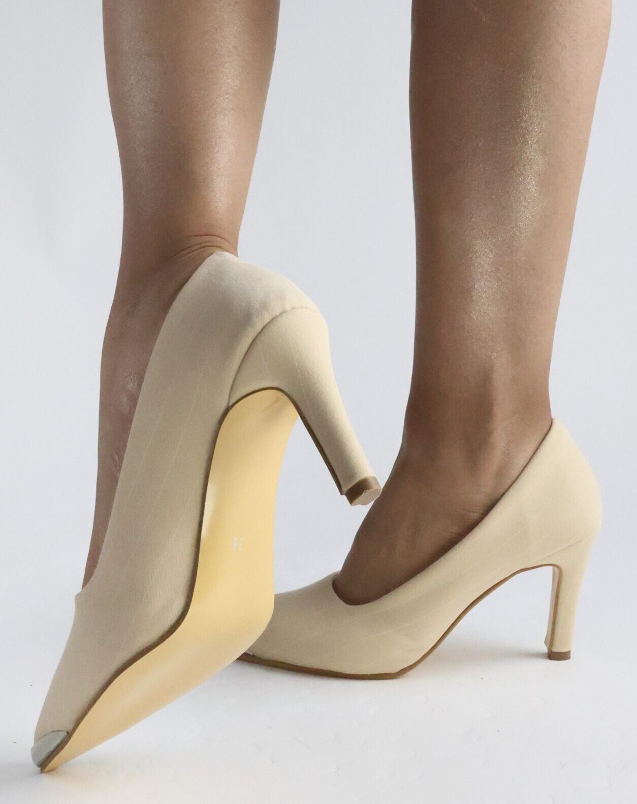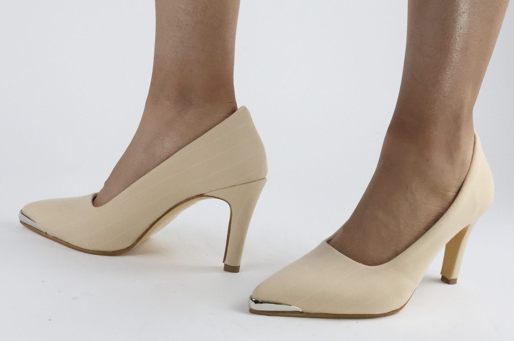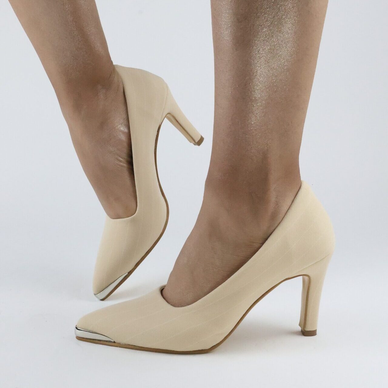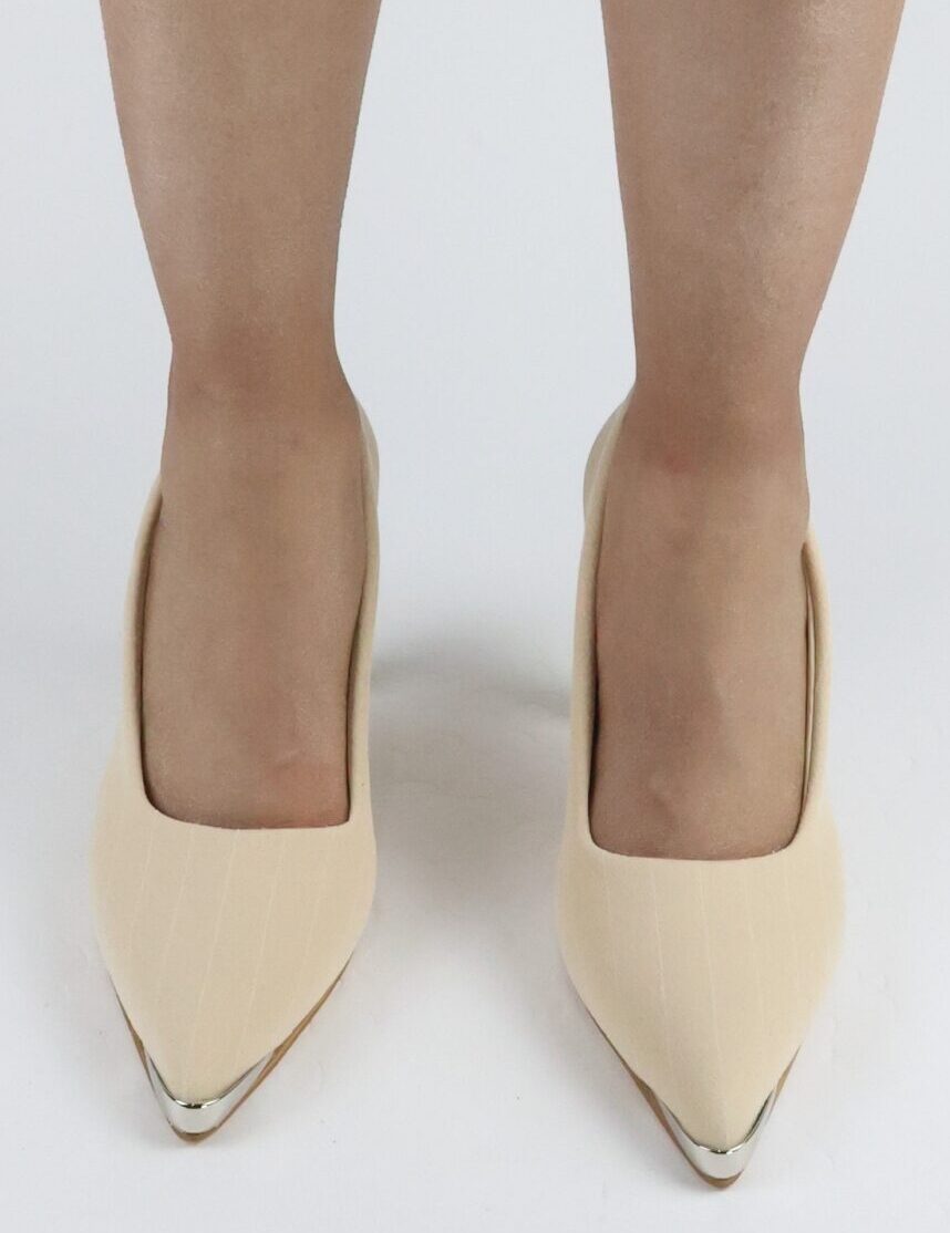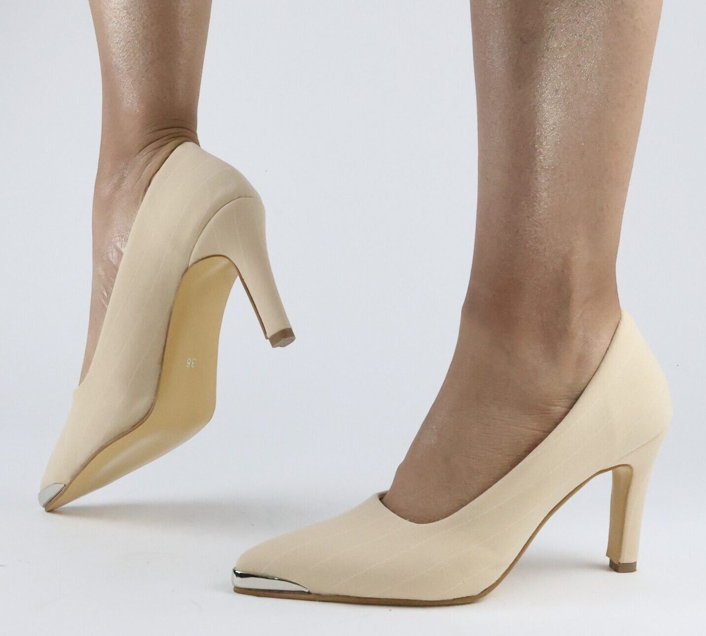 Sivri burun tasarımı ile şık ve zarif bir görünüm sunar. Her mevsim rahatlıkla tercih edilebilecek, tüm sezonlara uygun yapısıyla dikkat çeker. Genç ve dinamik tarzınıza hitap eden modern çizgili deseniyle stilinizi tamamlar. Günlük kullanım için ideal olan bu topuklu ayakkabı, iş ortamında da rahatlıkla kombinlenebilir. İnce topuklu yapısı sayesinde feminen siluetinizi ön plana çıkarırken konforundan ödün vermezsiniz. Neolit taban materyali ile dayanıklılığı artırarak uzun süreli kullanım imkanı sağlar. Orta boy topuk yüksekliği (9 cm) hem şıklığı hem de rahatlığı bir arada sunar. Suni deri astarı ve saya materyali kolay bakım avantajları sunarken, temizliği pratiktir. Tekstil iç taban malzemesi ayağınıza yumuşak bir dokunuş sağlayarak gün içindeki konforunuzu arttırır. Bağcıksız tasarım sayesinde hızlı giyip çıkarma kolaylığı yaşarsınız; zamandan tasarruf edersiniz. Business koleksiyonuna özel olarak tasarlanmış bu ayakkabı, profesyonel görünümünüzde fark yaratmanız için idealdir.