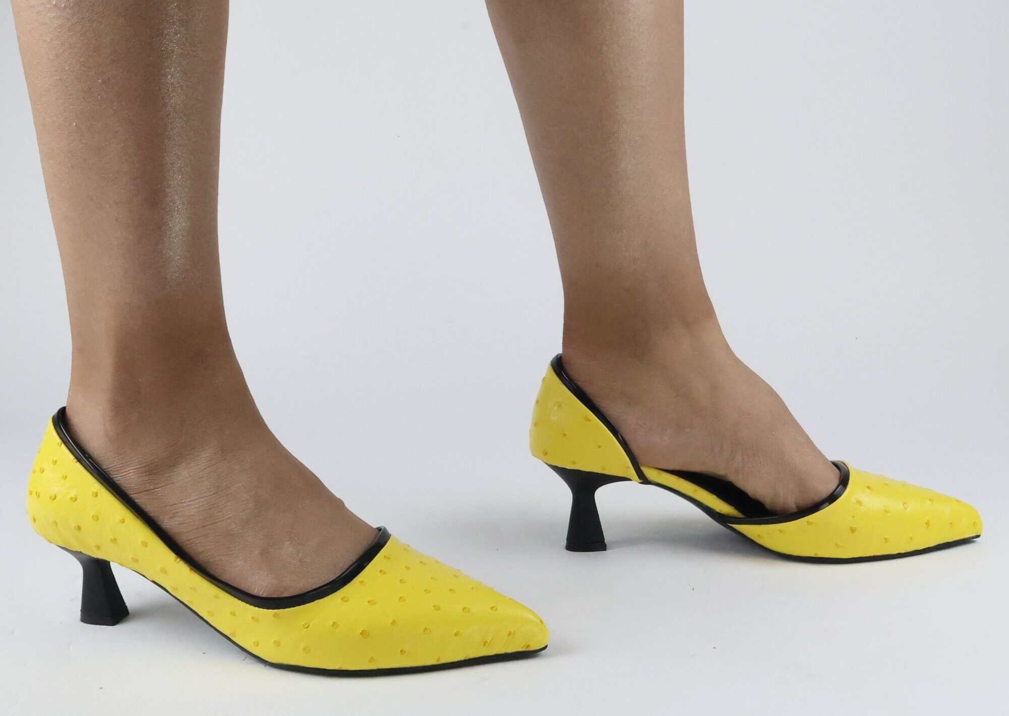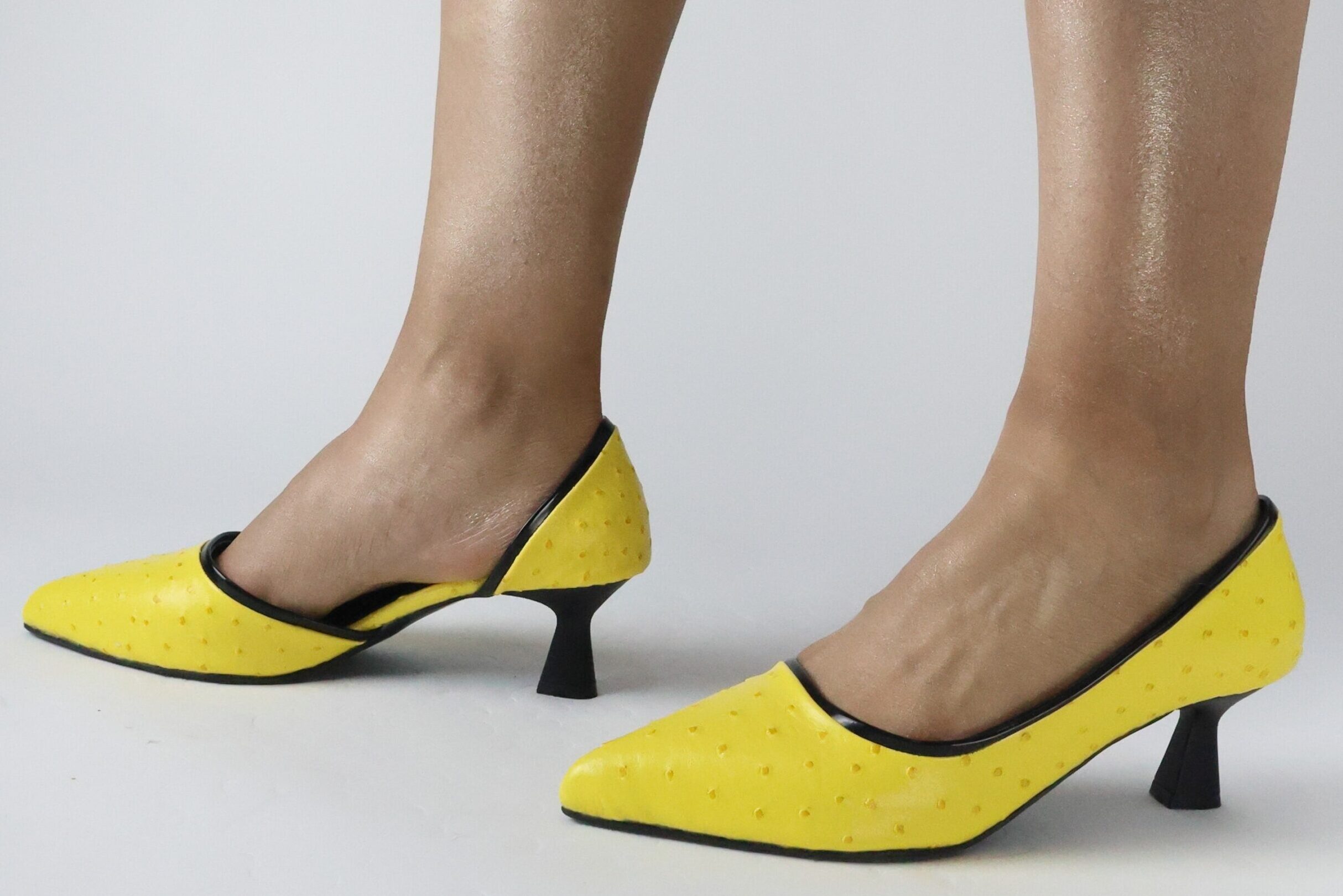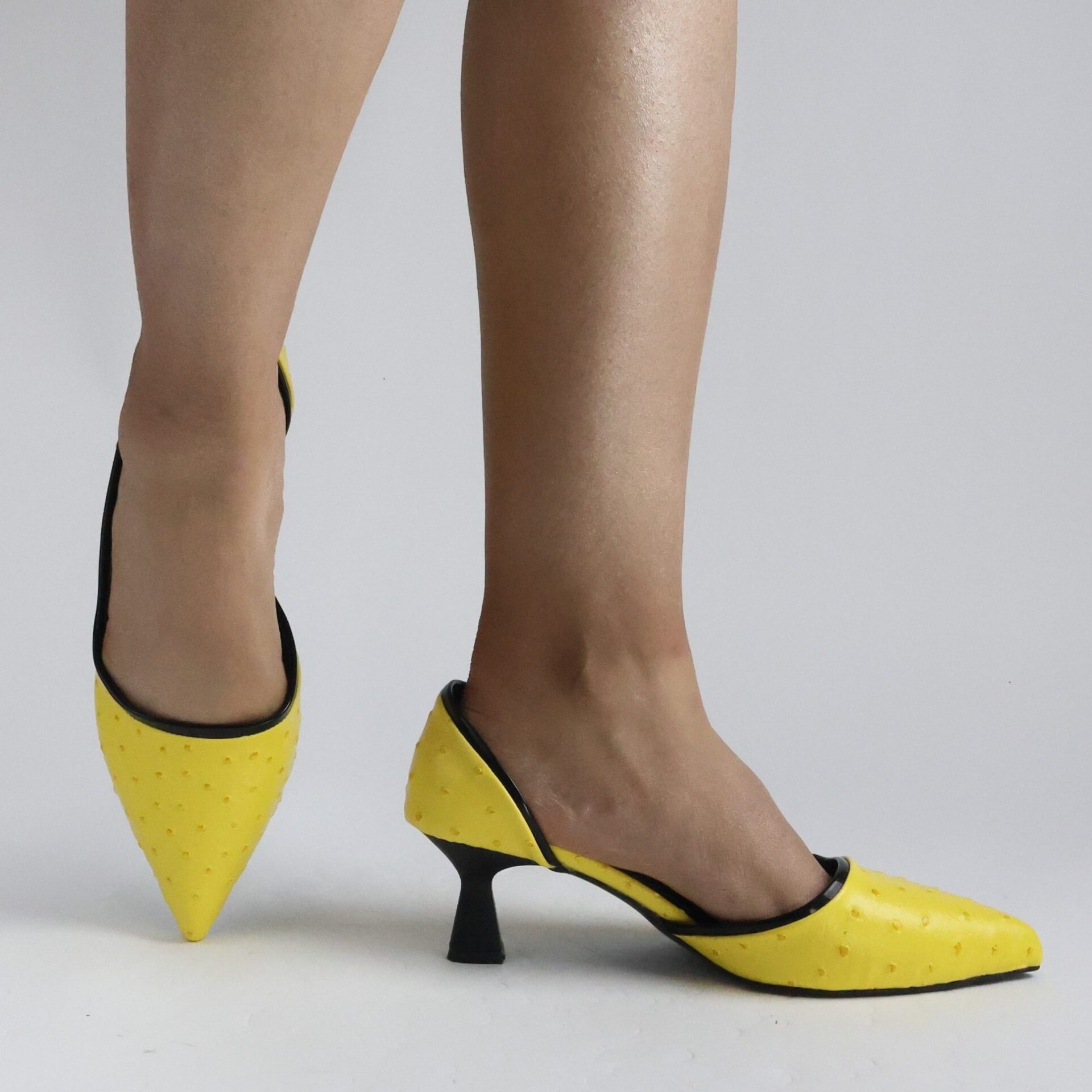Nokta Desenli Sarı Yan Açık 5 cm Topuk