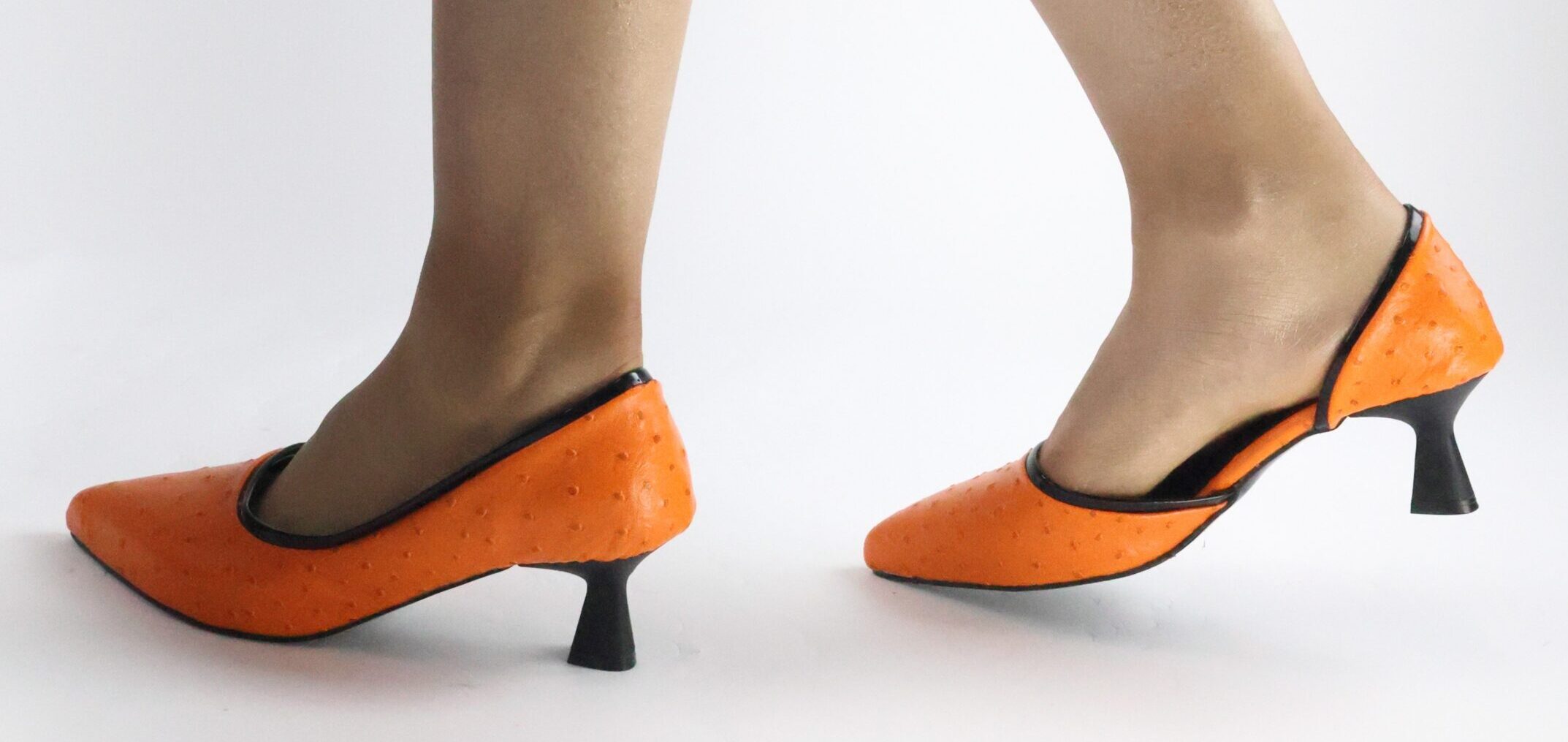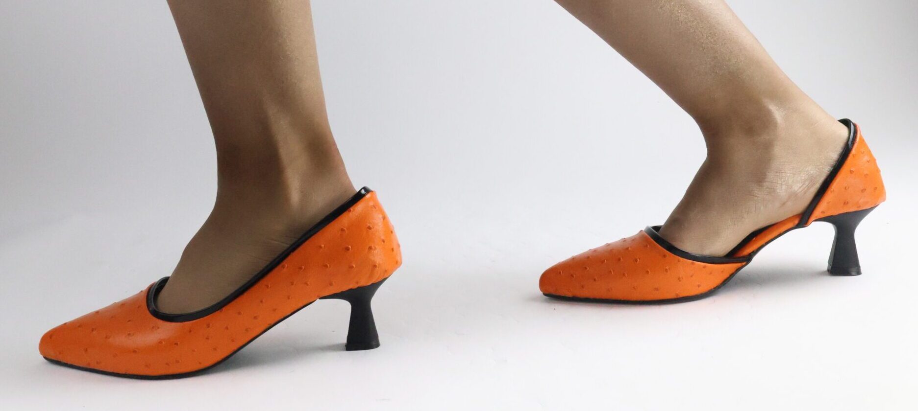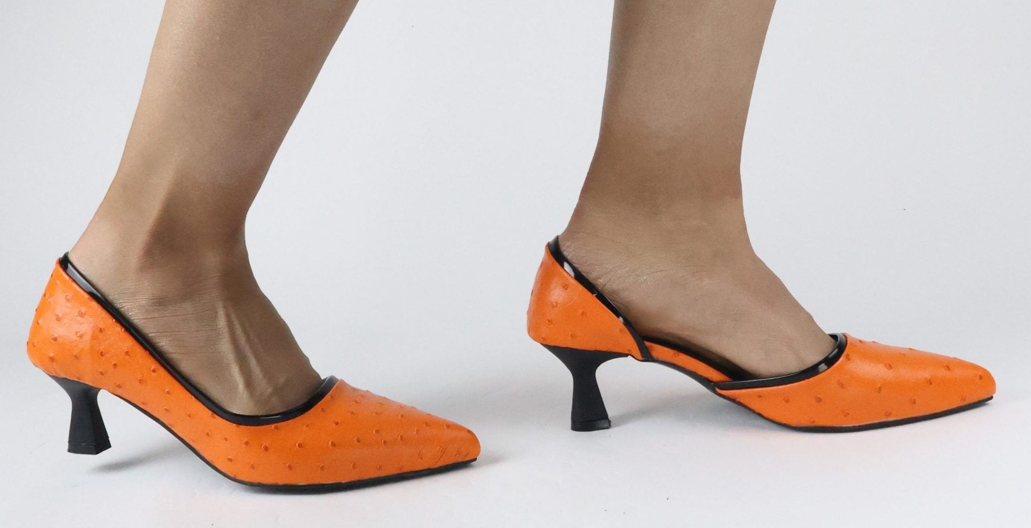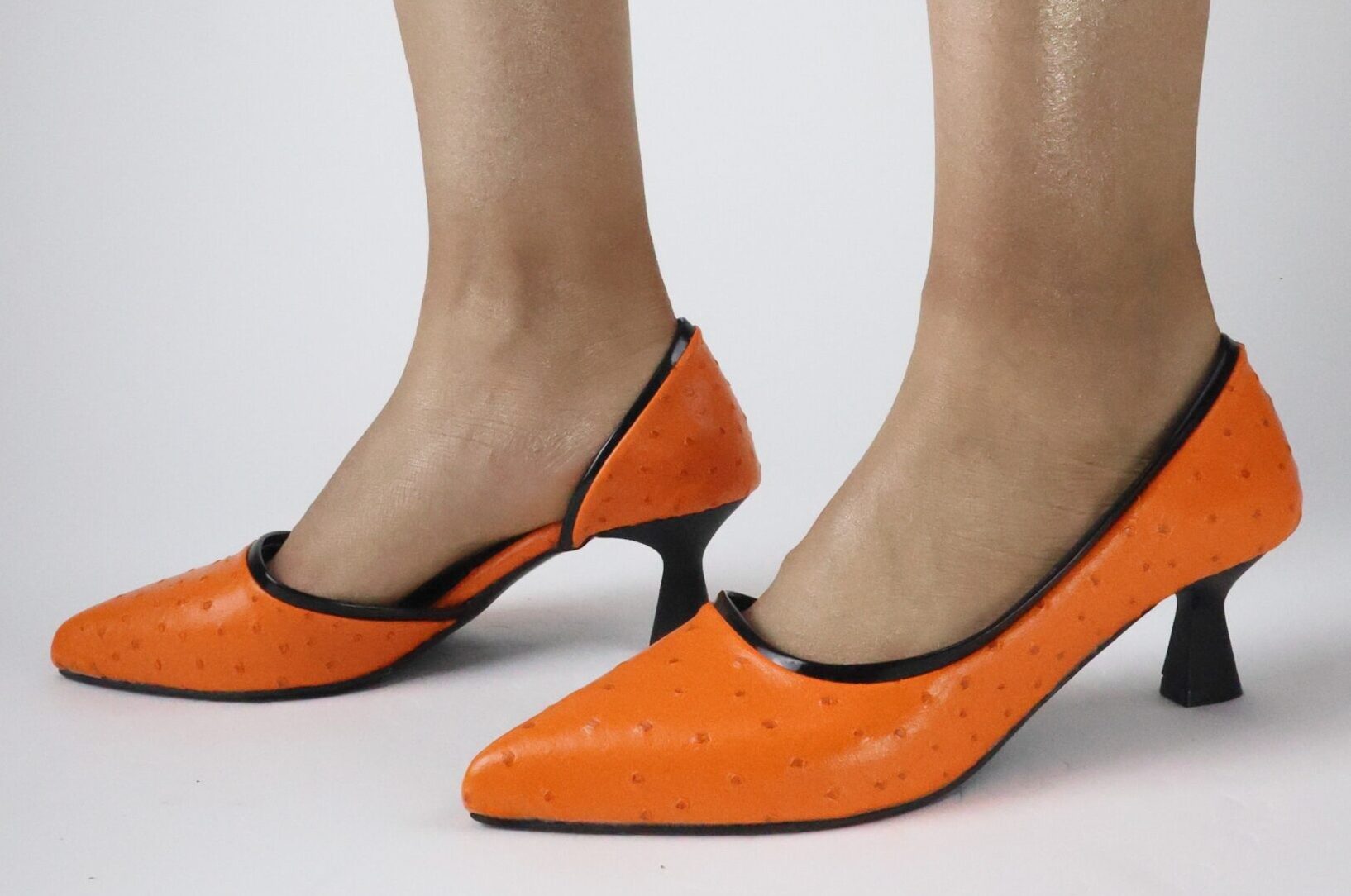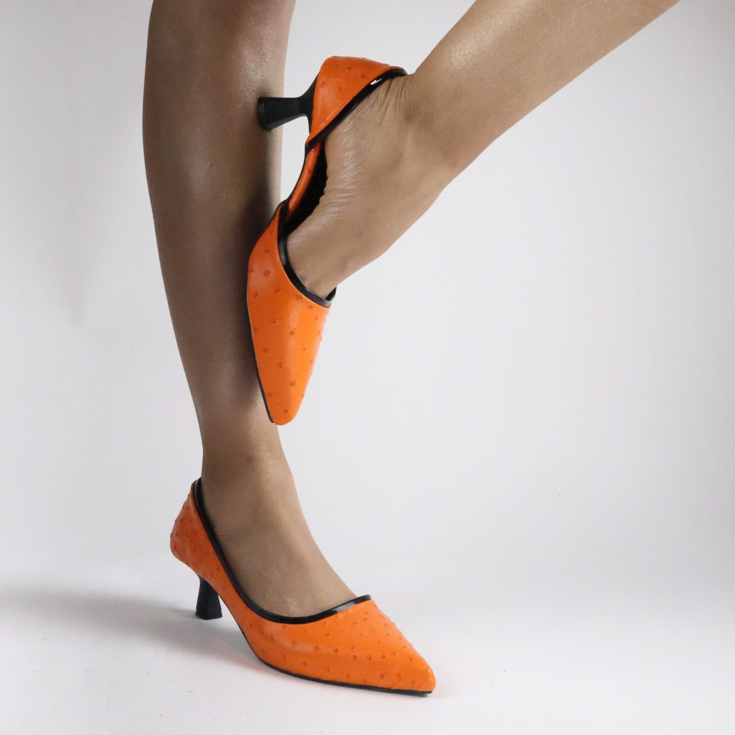 Nokta Desenli Turuncu Yan Açık 5 cm Topuk